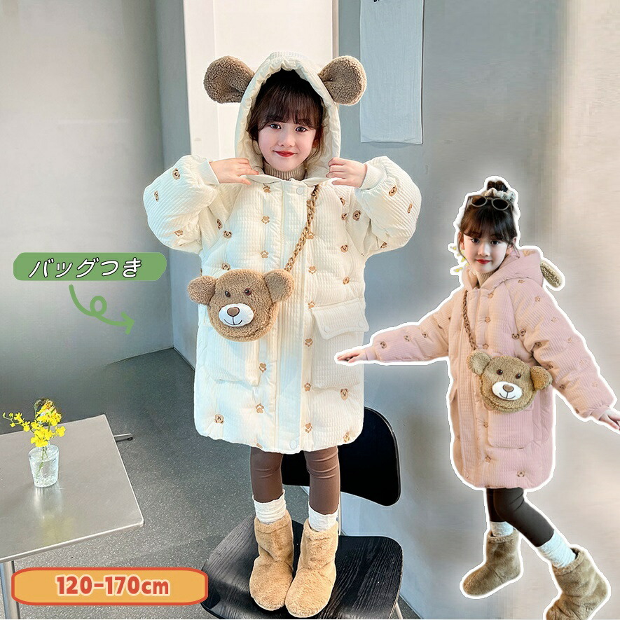 キッズ アウター 女の子 冬 ダウンコート ロング 子供服 女の子 もこもこ 通園 通学 幼稚園 小学生 中学生 中学生 防寒 150cm 160cm 170cm