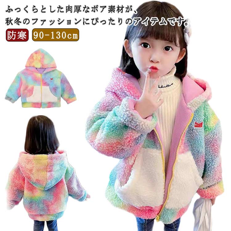 キッズ ボアジャケット 虹色 冬 マルチカラー ボアコート 子供服 もこもこ レーンボー 防寒 暖かい