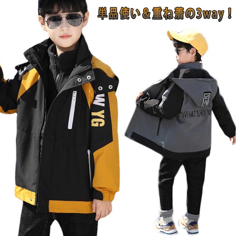 マウンテンパーカー キッズ ジャケット 3WAY 子供 男の子 ボアパーカー付き 春秋冬 防寒 ふわふわ