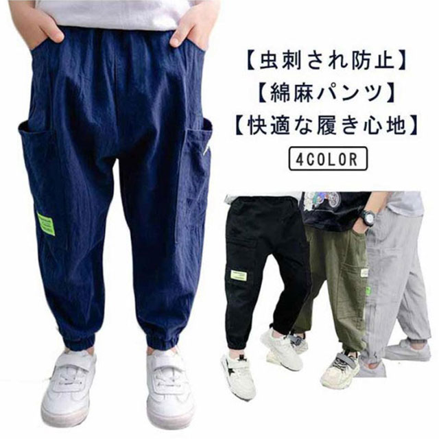 虫よけ対策 男の子 ロングパンツ 子供服 長ズボン 綿麻 ゆったり ボトムス アウトドアキッズ ベビー マタニティ キッズファッション パンツ