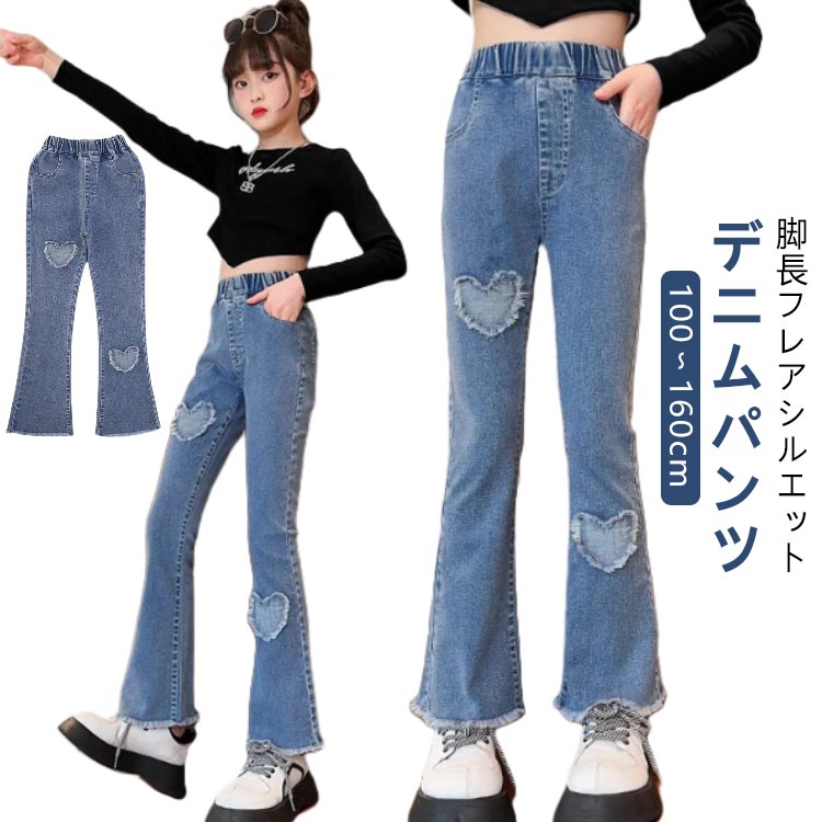 ブーツカット 脚長シルエット ボトムス 子供 Jeans 小学生 秋服 韓国 ファッションキッズ ベビー マタニティ キッズファッション パンツ