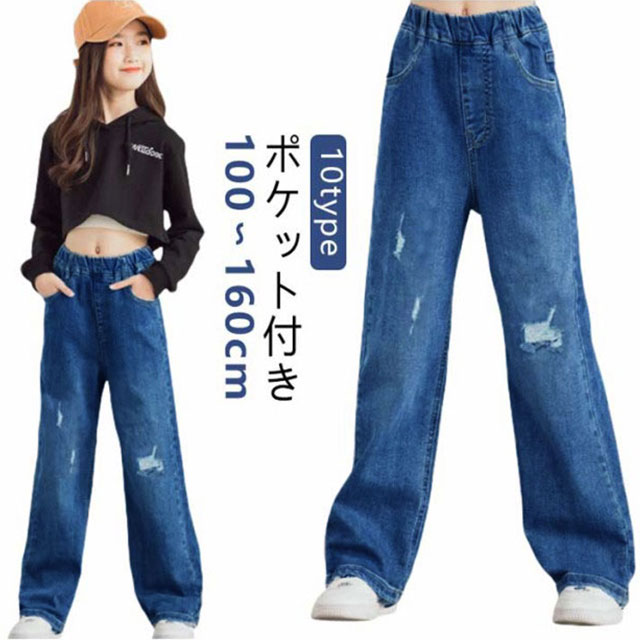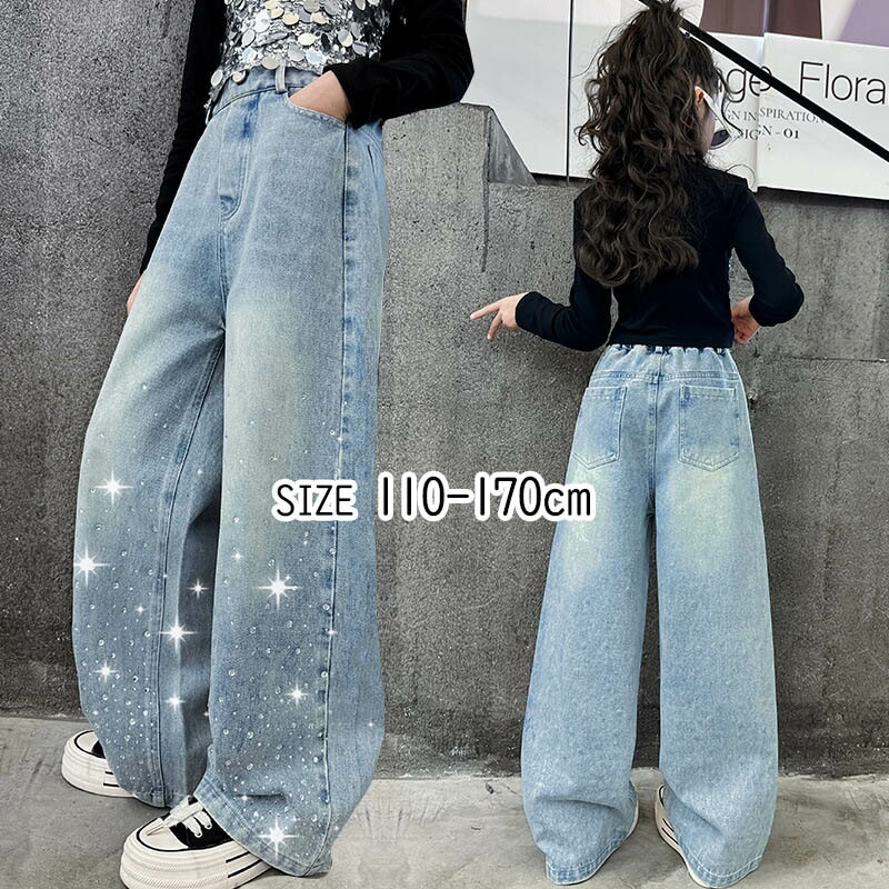 デニム キッズ パンツ ワイドパンツ 子供服 女の子 長ズボン ボトムス ロングパンツ デニムパンツ 通学 お出かけ お洒落 おしゃれ 可愛い