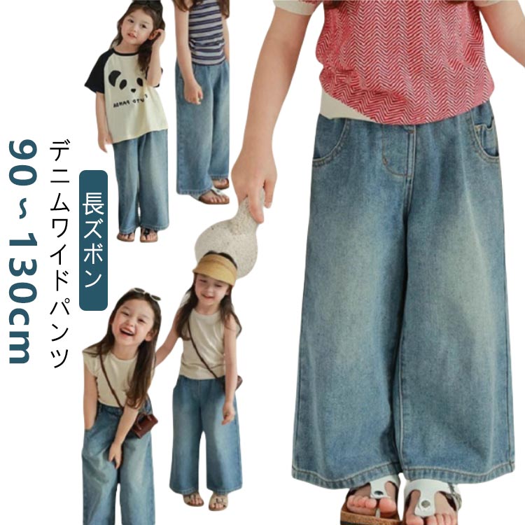 子ども服 こども服 デニム ワイド パンツ レッスン おでかけ 流行 韓国子供服キッズ ベビー マタニティ キッズファッション パンツ