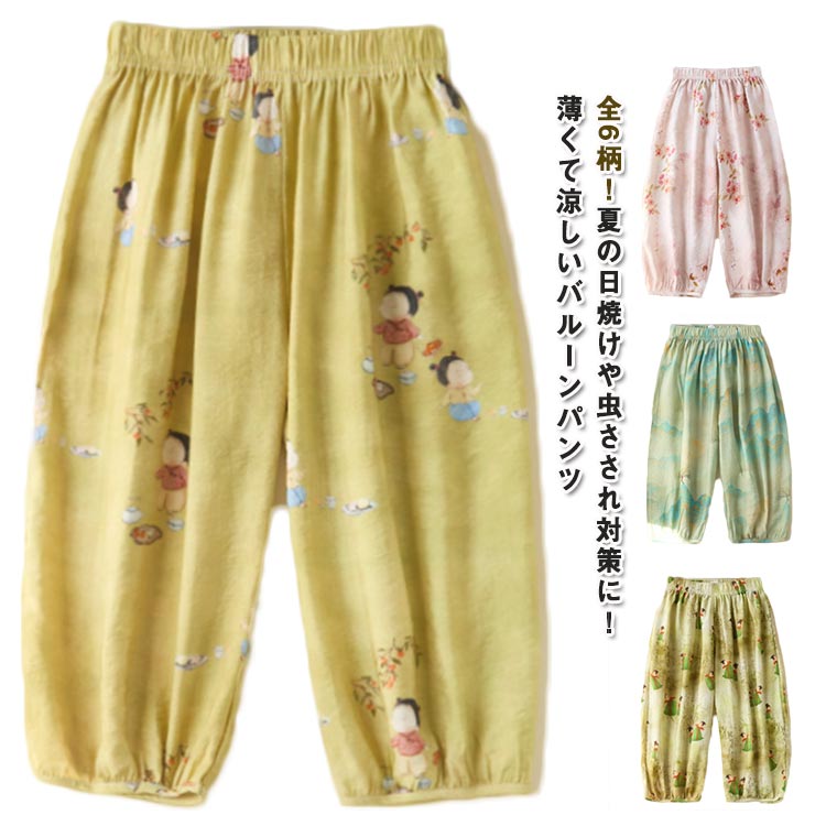 全6柄 キッズ パンツ 子供 こども 清涼感 部屋着 リラックスパンツ 薄手 楽ちん バルーンパンツ