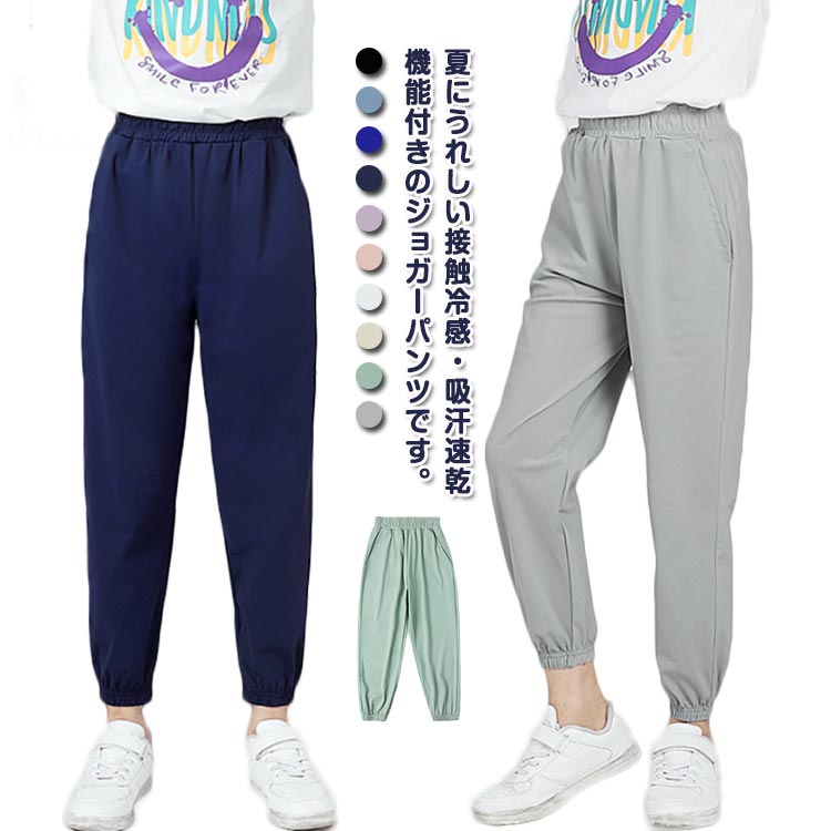 ひんやり リラックスパンツ 薄い ストレッチパンツ 速乾 吸汗 ジョガーパンツ キッズ 通気性 ウエストゴム ボトムス 裾ゴム