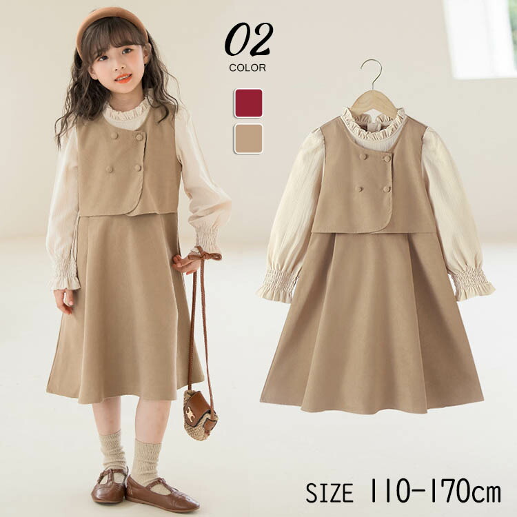 韓国風 子ども服 イベント 誕生日 女の子 キッズ 長袖ワンピース 学院風 フォーマル 卒園式 入学式 卒業式 受験用 発表会 七五三 キッズ ゆったり ロング丈ワンピース 通学着 秋着 夏用 無地