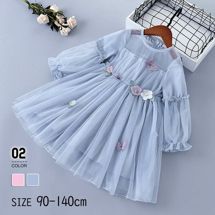 子供 ワンピース 蝶々 ワンピース チュニック ふわふわ コスプレ パーティー カラフル メッシュ フラワーガール 1歳 2歳 3歳 4歳 ハーフ バースデイ フォーマル フラワーガール