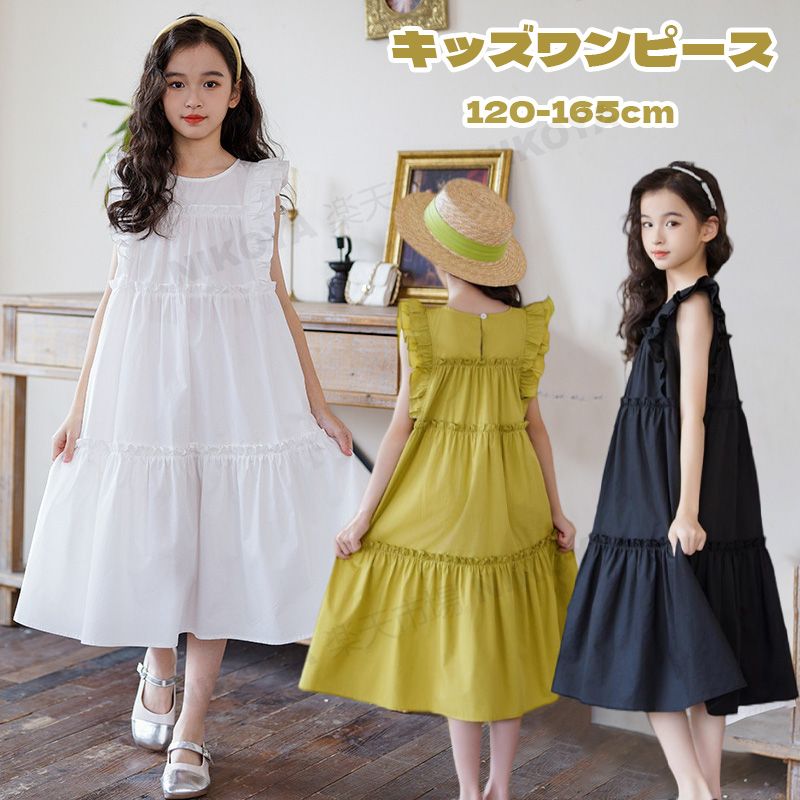 子供服 ワンピース お姫ワンピース 無地ワンピース 可愛い ふんわり 綿 120 130 140 150 160 165 ワンピース 夏 ノースリーブ キッズ 子供 子供服 女の子 入学式 ピアノ 発