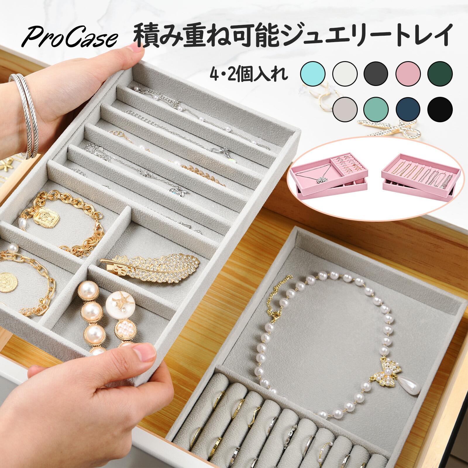ProCase ジュエリートレイ 2 4個 ジュエリー収納 積み重ね可能 アクセサリケース ドレッサー引き出し用 ディスプレイ 仕切り付き