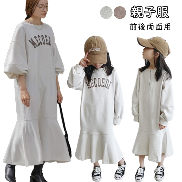 マーメイド 前後両面用 親子服 親子お揃い 子供服 ロングパーカー スウェットワンピース 女の子 キッズ 韓国風 通気 プリント ジッパー飾り 春秋冬 小学校 通園 通学 おでかけ