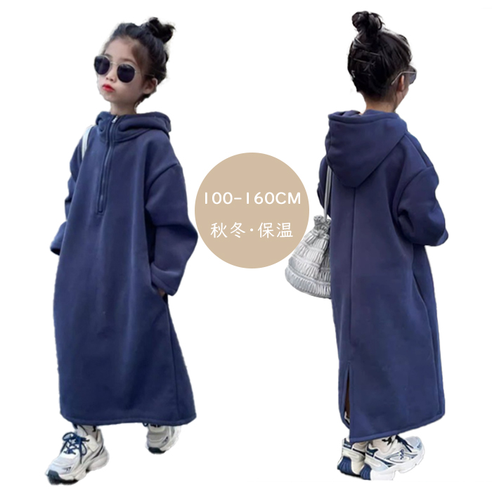 スウェットワンピース タートルネックワンピース 子供服 ロングパーカー 女の子 フード付き 裏起毛 長袖 厚手 キッズ ハイネック ポケット付き 通園 通学 普段着 お出かけ