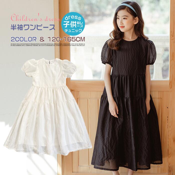 子供服 ワンピース 半袖ワンピース 総レース 女の子 フォーマル ドレス ピアノ発表会 七五三 入学式 韓国子供服 レースワンピ チュニック ジュニア 120 130 140 150 160 165