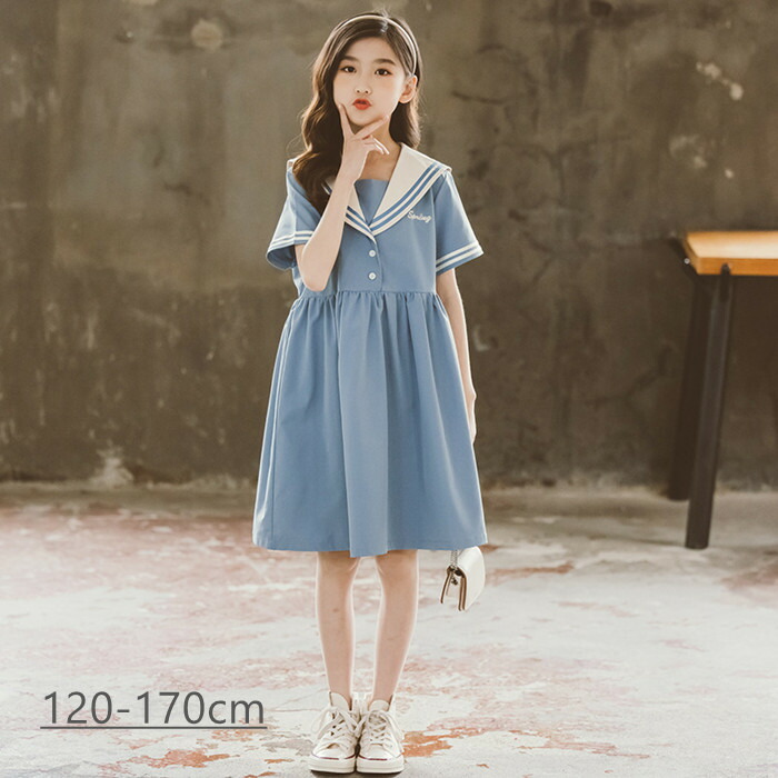 子ども服 ライン入り かわいい ワンピース ロングワンピース 半袖 セーラー 制服 爽やか キッズキッズ ベビー マタニティ キッズファッション ワンピース
