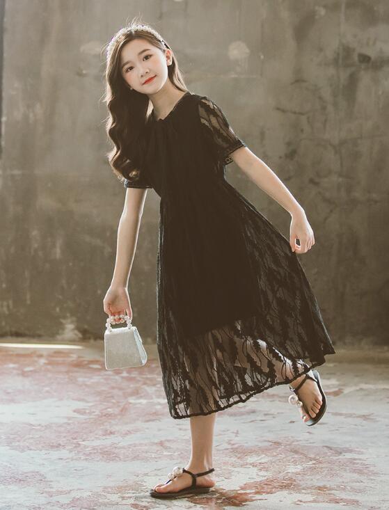 子ども服 イベント 誕生日 女の子 キッズ 半袖レースワンピース 学院風 フォーマル 卒園式 入学式 卒業式 受験用 発表会 七五三 キッズ ゆったり ロング丈ワンピース ミモレ丈 通学着 秋着 夏用