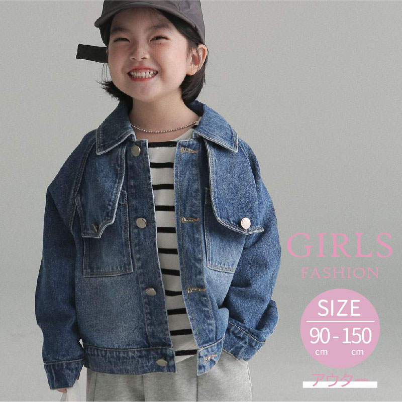 デニム アウター 春 秋 子供服 女の子 ボタン 前開き トップス 長袖 かわいい キッズ服 ジュニア 通園 通学 保育園 小学生 お出かけ ブルー 90cm 100cm 110cm 120cm 13