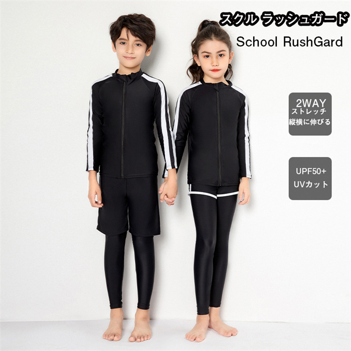 ラッシュガード 子供 キッズ 男の子 女の子 ジュニア スクール ユニセックス 学校用 上着 長袖 ジップアップ UPF50 UVカット紫外線カット 水着 無地 M-3XL