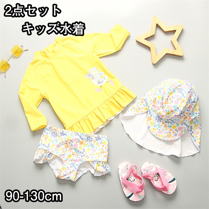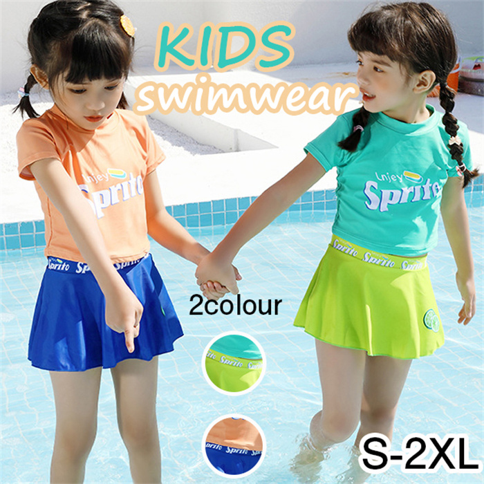 キッズ 水着 女の子 トップス フレアスカート セパレート 2点セット トップスイン ウエストゴム 着やすい 子供 ベビー ジュニア 可愛い お洒落 ガーリー シンプル 幼稚園 保育園