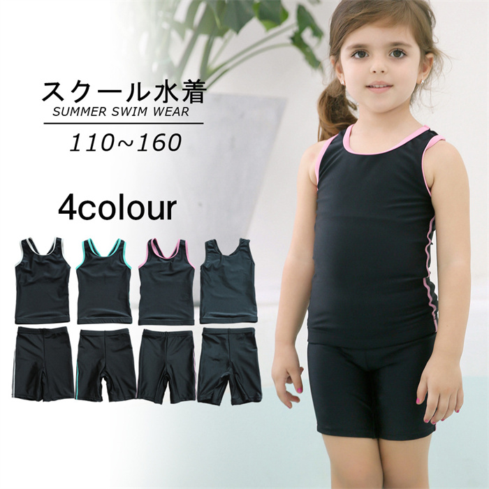 スクール水着 女の子 セパレート タンキニ パンツタイプ 上下 キッズ 小学生 中学生 短パン UPF50+紫外線対策加工 子供用スクール水着 プール スイミング 競泳 紺色 黒