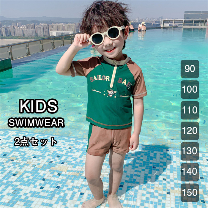 子供 水着 男の子 2点セット トップス ショートパンツ 長袖 ラッシュガード キッズ 中学生 水着 男子 小学生 子供用フィットネス水着 みずぎ スイミング スクール子供水着