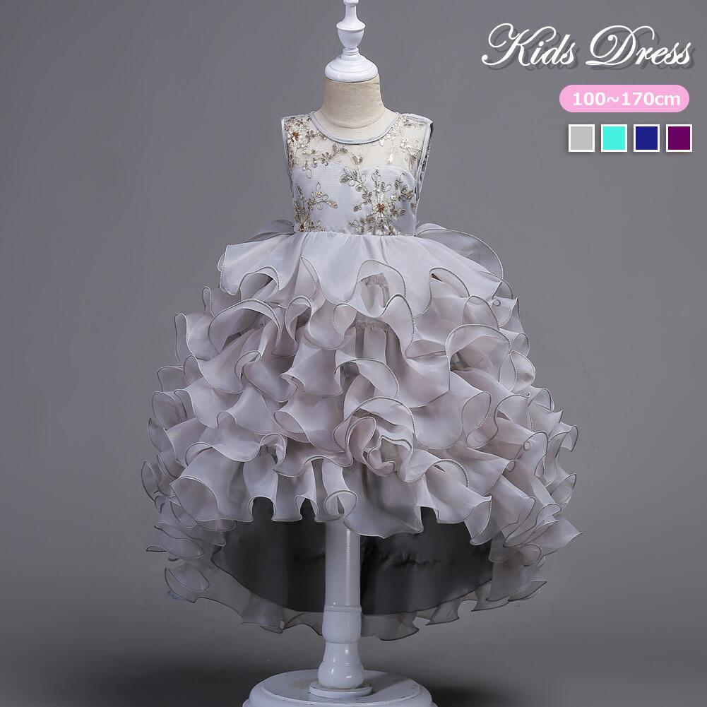 子供ドレス ピアノ発表会 ロング ドレス 子供 子どもドレス フォーマル 七五三 ジュニアドレス 紺 紫 シャンパン グレー 白 赤ピンク 120 130 140 150 160 170 12色