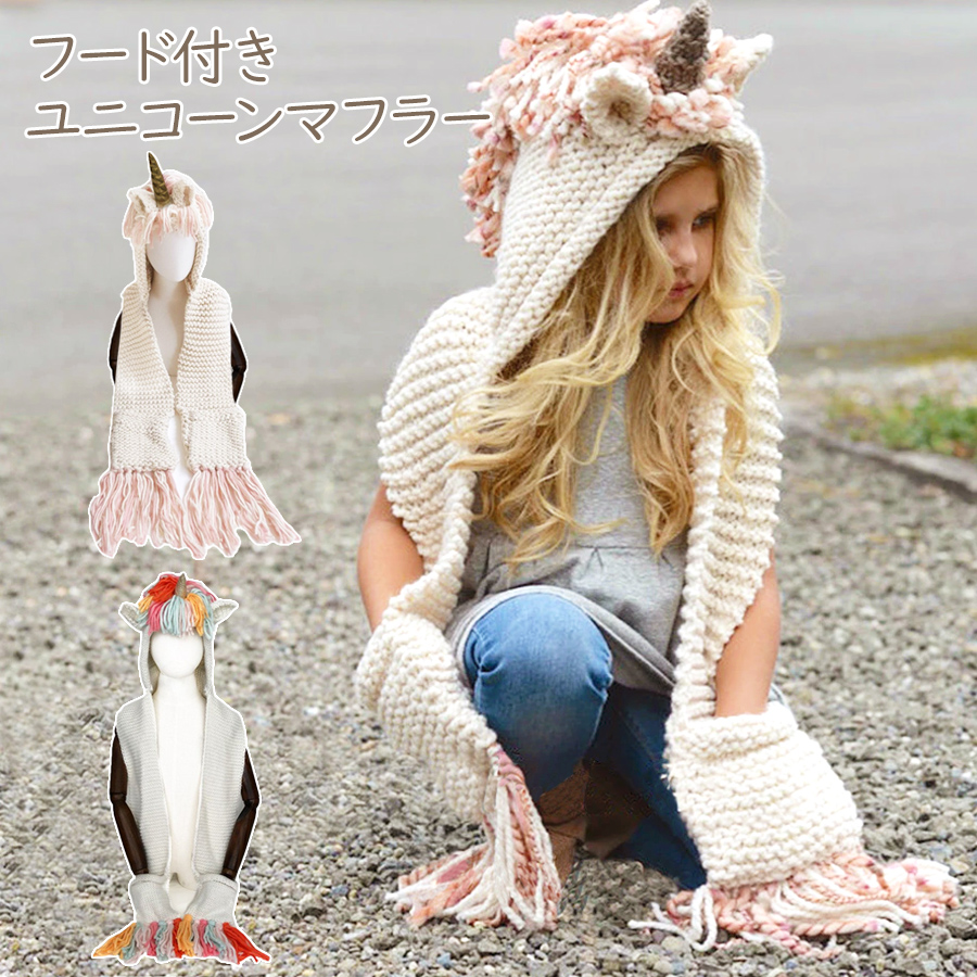 キッズ マフラー ユニコーン ニット 女の子 ベビー ガールズ レディース ファッション 子供 ギフト 贈り物 プレゼント ラッピング クリスマス