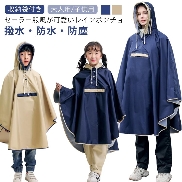 レインコート セーラー風 レインポンチョ ベビー かわいい おしゃれ 男性 収納袋 通園 通勤 レインウェア 子供用 自転車 赤ちゃん 中学生 高校生 大人 女性 通学 男女兼用 親子 キッズ用