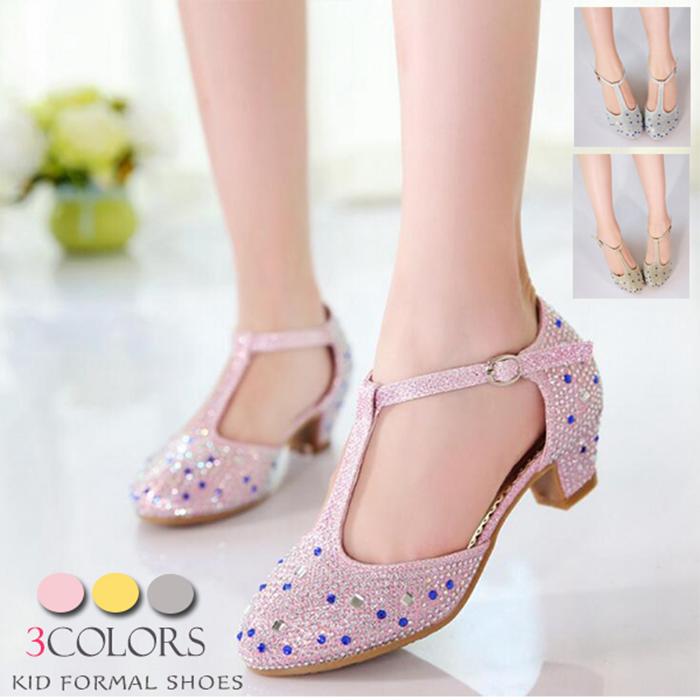 とてもオシャレで服に合わせやすく大活躍♪キラキラしてるビジューフォーマル靴 キッズ フォーマルシューズ光る 疲れないTストラップ