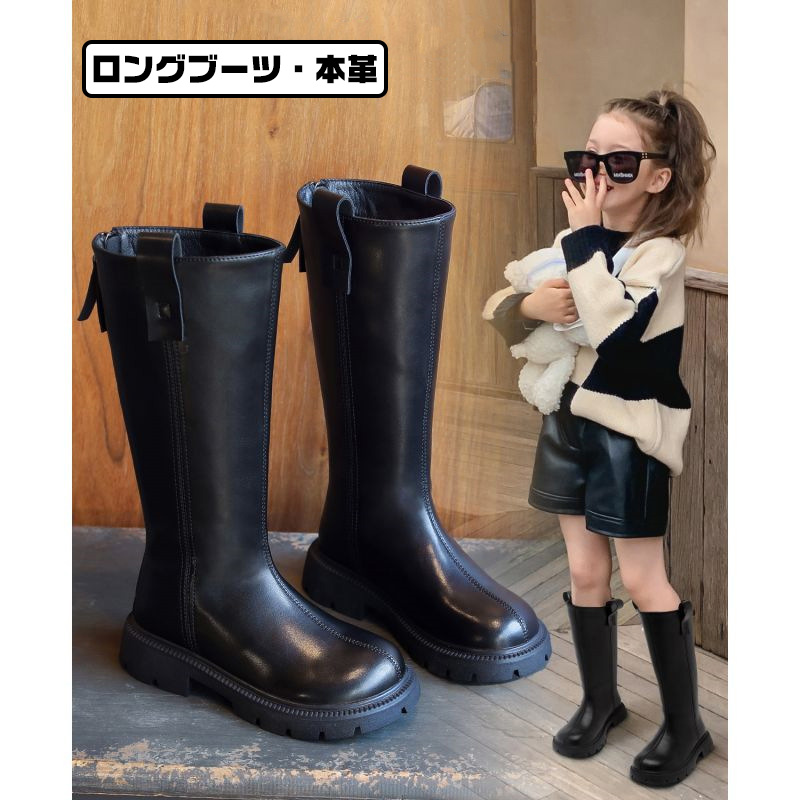 キッズロングブーツ 本革 子供 靴 編み上げなし フォーマル 女の子 柔らかい 履きやすい 滑り止め 普段使い 通学 人気 歩きやすい 防寒 卒園式 卒業式 秋 冬 裏起毛 内祝い ダンス