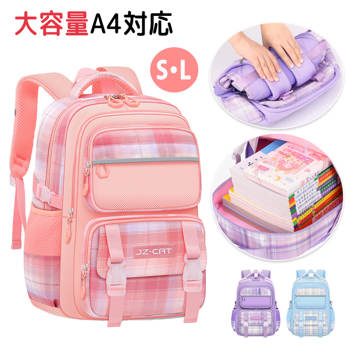 通学、通園だけではなく、遠足も、旅行もできます チェック柄リュックサック 大容量で収納ポケットたくさん 反射板付き 防水加工で洗える コンパクトに折り畳める 楽しい成長