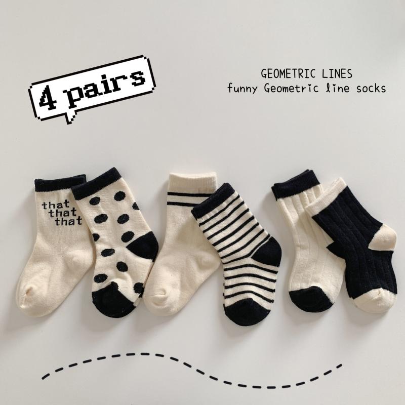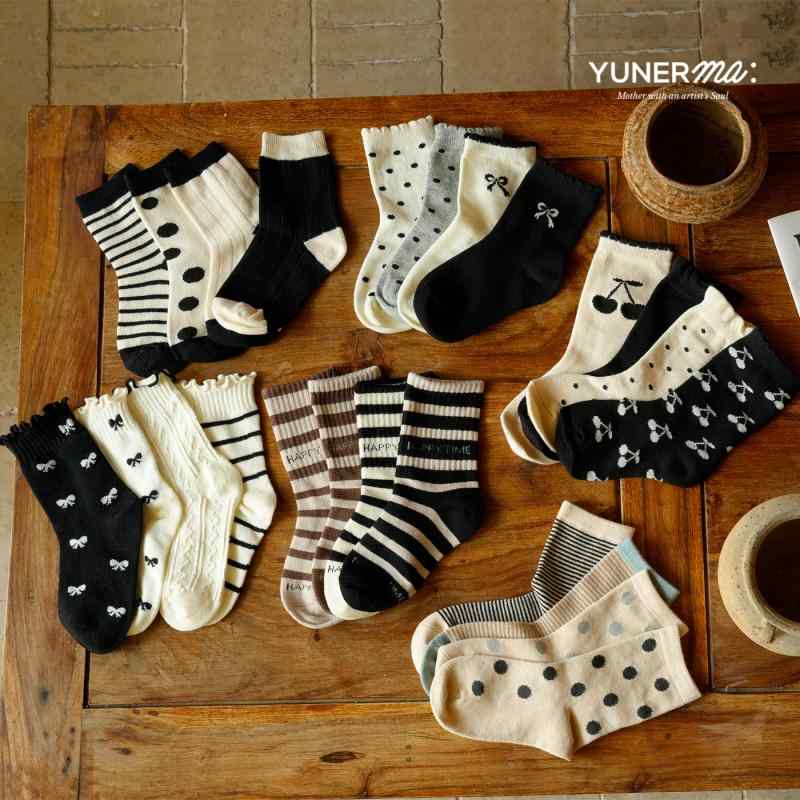 キッズ 子供の靴下 ソックス セット 男の子 女の子 ドット 水玉 ボーダー しましま モノトーン 黒 ブラック 白 春 夏 秋