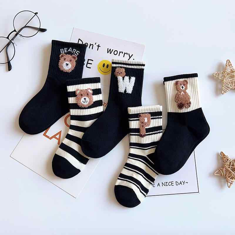 キッズ 子供の靴下 ソックス セット 男の子 女の子 モノトーン ボーダー 黒 ブラック 茶色 くま スマイル ハート もこもこ