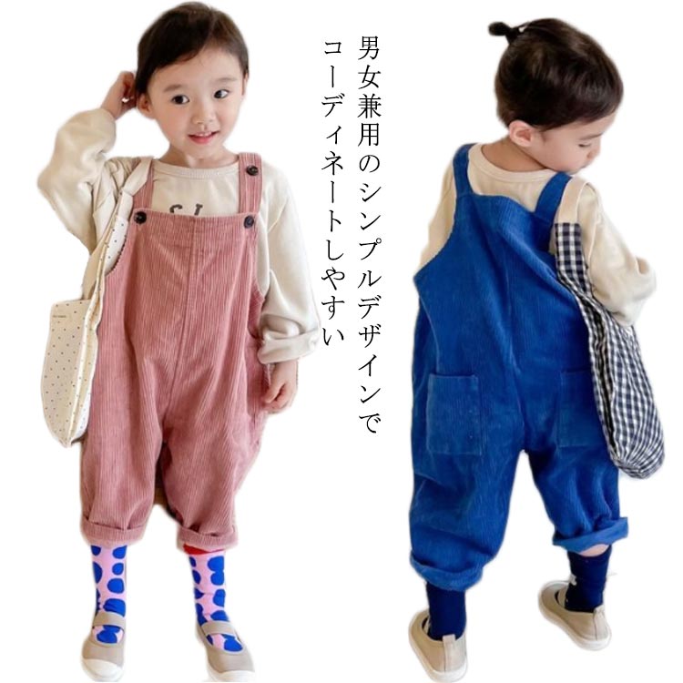 コーデュロイ サロペット キッズ オーバーオール オールインワン 女の子 男の子 男女兼用 シンプル カジュアル 春 秋 冬