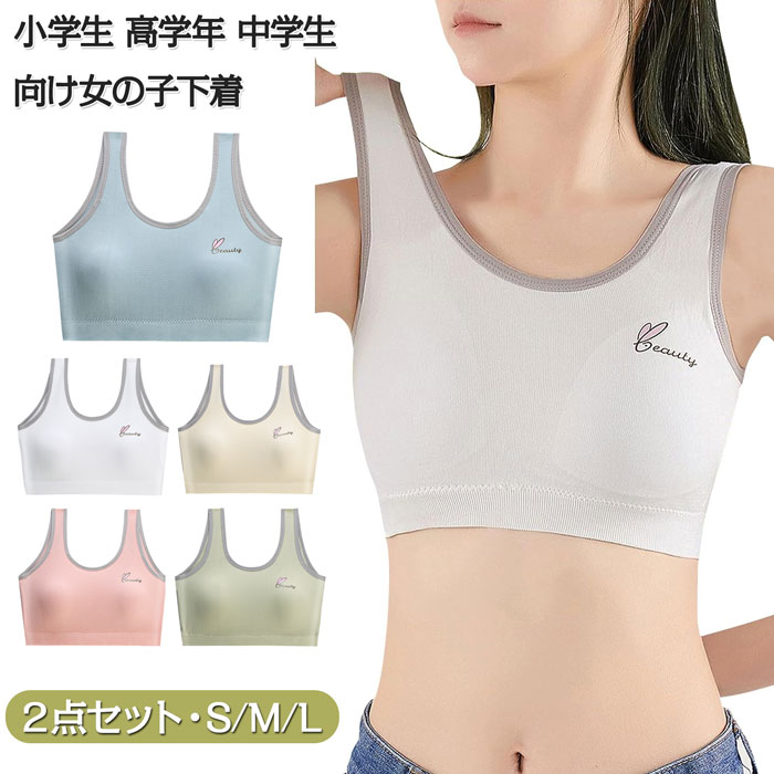 小学生 中学生 スポーティー 子供用 女子 中学生 キッズブラ 子ども用 インナー スポーツブラ 高学年 カジュアル 2点セット ファーストブラ ジュニアブラ 下着