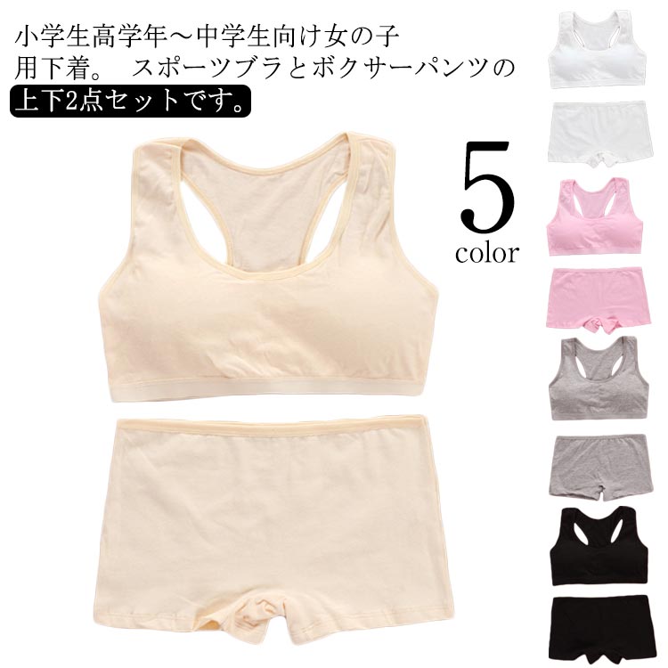 インナー 上下セット スポーツブラ ボックスショーツ ジュニア 女の子 子供用 肌着 ブラジャー 下着 小学生 女子 かわいい