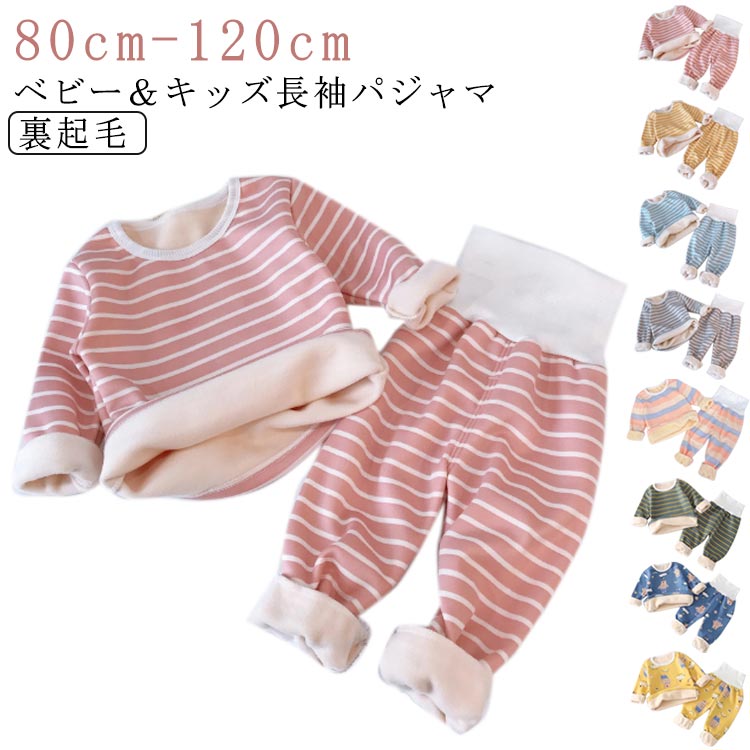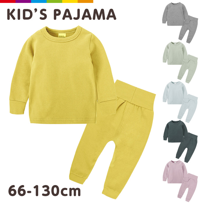 パジャマ キッズ 長袖 子供 冬 子ども セットアップ 男の子 女の子 スウェット ルームウェア ベビー ハイウエスト 腹巻き 無地 シンプル 北欧 くすみカラー ラウンドネック 子供 長ズボン 綿