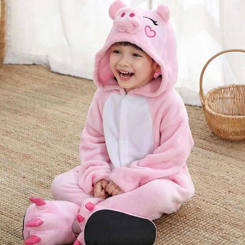 送料無料着ぐるみ パジャマ 子供用 アニマル キッズ パジャマ クマ 豚 可愛い 衣装 仮装 コスチューム ブルーピンク靴付き