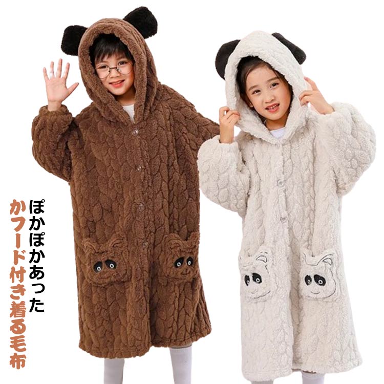 前開き 170 フード付き 140 着る毛布 冬 ロング ガウン パジャマ 寝巻き 男の子 120 寝冷え対策 女の子 暖かい 部屋着 パジャマ お風呂上がり 防寒 ルームウェア