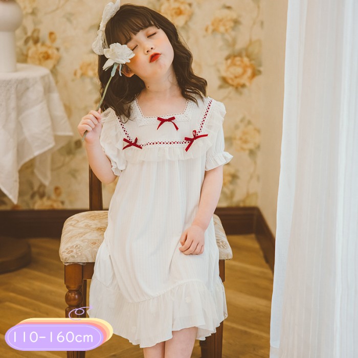 キッズ パジャマ 女の子 ワンピース 春 夏 半袖 綿 レース 柔らかい パジャマ 子供 ルームウェア 部屋着 寝間着 150 160