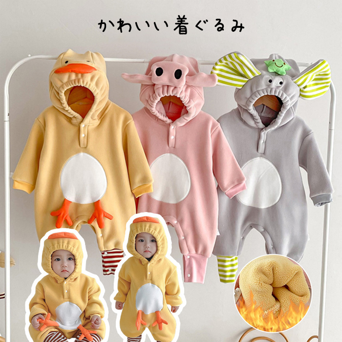 ベビーロンパース 可愛い 象柄 パジャマ ルームウェア赤ちゃんコスプレ コスチューム 仮装ロンパースハロウィン 仮装ベビーコスプレ ロンパース着ぐるみ