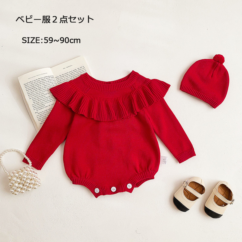 ベビー服 ニットロンパース新生児 赤ちゃんセーター ベビー女の子クリスマス仮装 サンタ服 子供 おしゃれコスプレ コスチューム 仮装 出産祝い 誕生祝いプレゼント