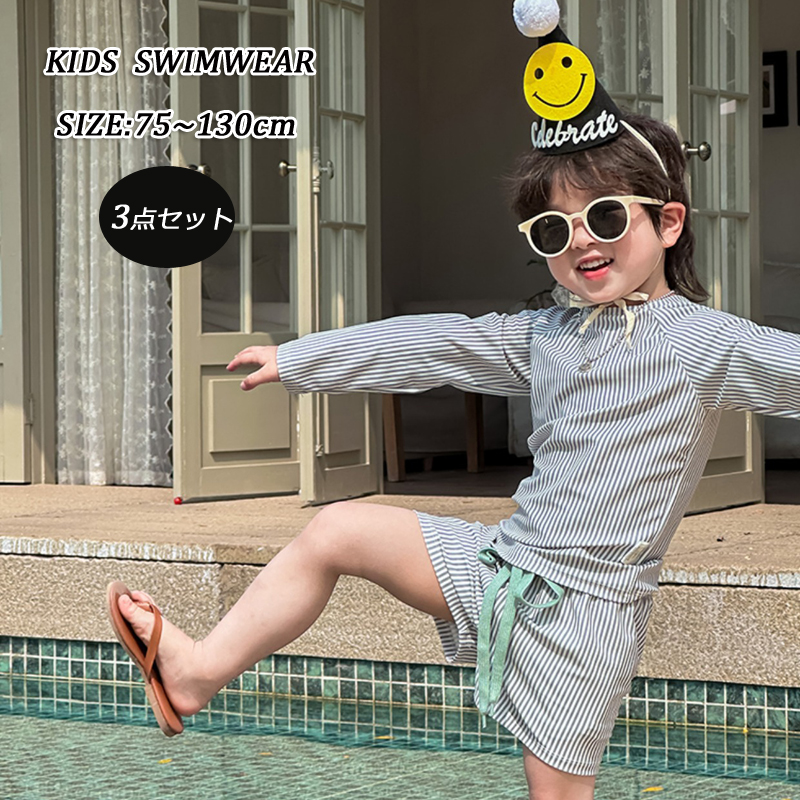 キッズ 男の子 水着 ラッシュガードUVカット3点セット 長袖 小学校 水着ベビー水着80女の子 水着 ガールズスクール水着 スイムウェア 120cm紫外線対策