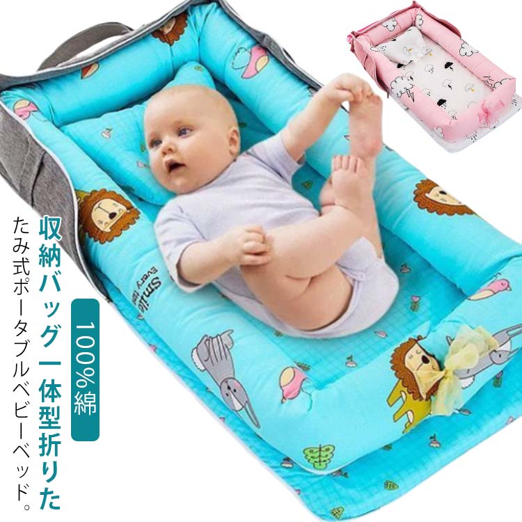 新生児 持ち運びベッド 寝返り防止クッション 簡易ベッド 赤ちゃん 折り畳みベッド ベッドインベッド