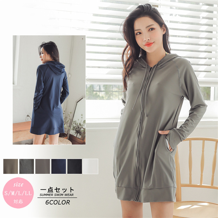ラッシュガード レディース ロング パーカー ロングラッシュガード 指穴付き 体型カバー 日焼け対策 UPF50+ UVカット加工 S-XL