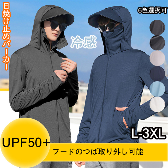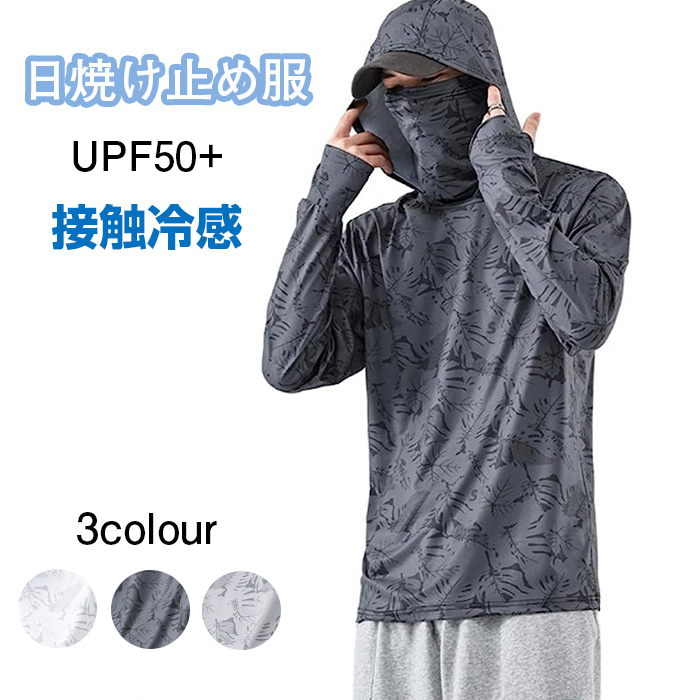 軽量な顔面カバー型 UVカットパーカー uvカット パーカー ラッシュガード メンズ uvカット メンズ 長袖 夏用 接触冷感 夏 薄手 軽量