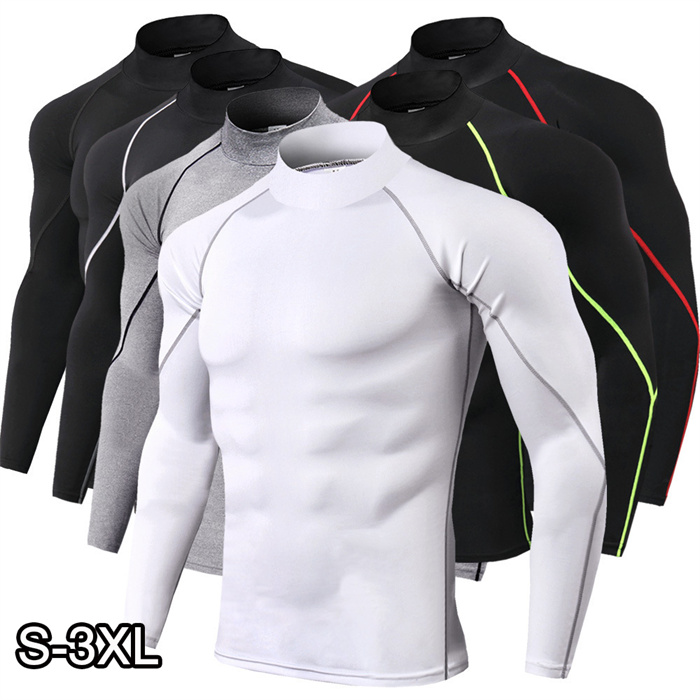 夏用インナー 長袖 ハイネック フィットネス長袖Tシャツ Tシャツ 接触冷感 吸汗速乾 消臭 コンプレッション UVカット メンズ ブラック 黒 S-3XL