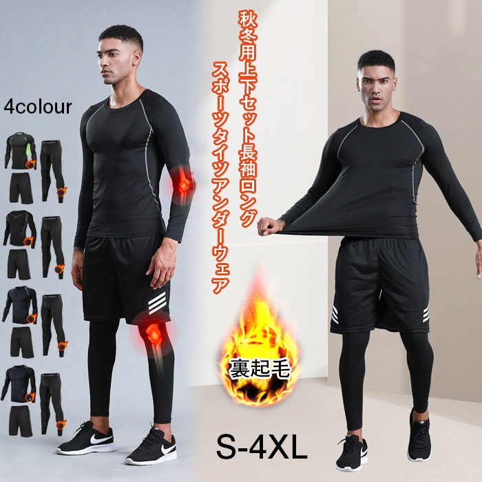 コンプレッションウェア メンズ 上下 セット 吸湿速乾 軽量保温 伸縮性コールドギア 防寒インナー コンプレッション タイツ 秋 冬用 S-4XL