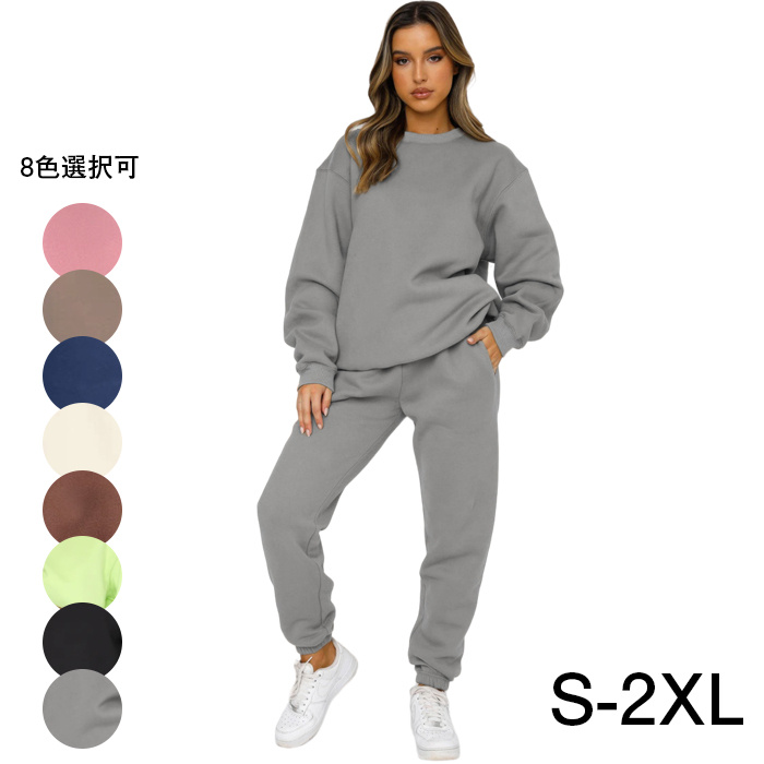 ジャージ上下セット 長袖 シンプル スウェットスーツ 無地 スムース生地 メンズ レディース スポーツウェア S-8XL