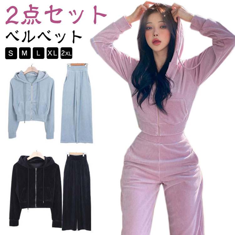 ルームウェア レディース セットアップ パジャマ 部屋着 パンツ セット 上下 上下セット パーカー 前開き ベロア ベルベット おしゃれ 春夏 黒 韓国 春秋 春 秋