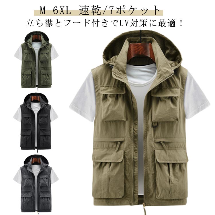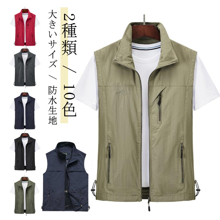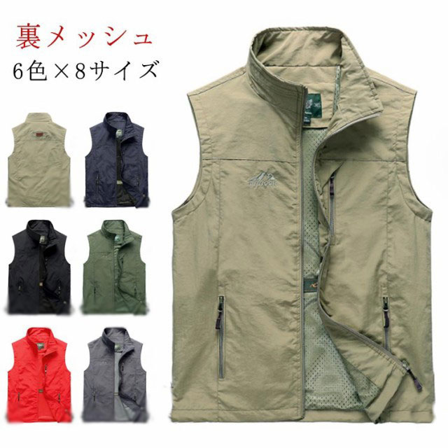 ゴルフベストメンズ スタンドカラー ジャケット 登山 釣り カメラマン ベスト キャンプ 仕事 通気 カメラマンジャケット カメラマン コート メンズ 春秋 春 秋 夏