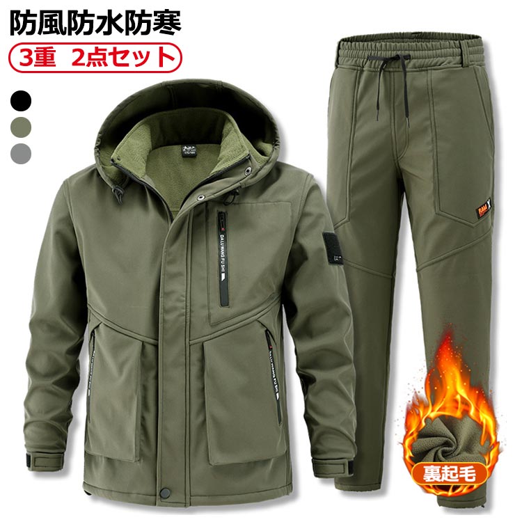 マウンテンパーカー ウインドブレーカー 上下 メンズ 裏起毛 ジャンパー ミリタリー ジャケット ハイキング キャンプ 防風 秋冬